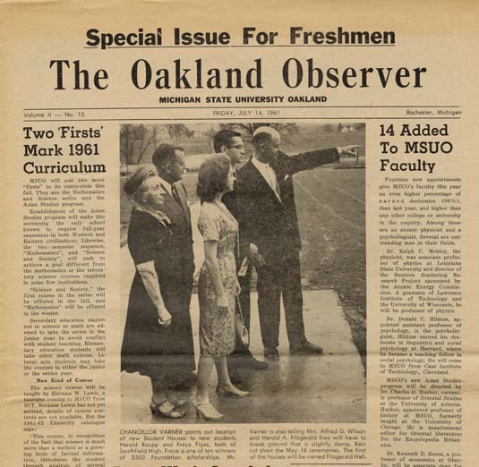 Class of 1964, come and remember life at Oakland in the early 1960s! Photos, documents and objects are on display in the library. You will be able to browse the Oakland Observer and much more!