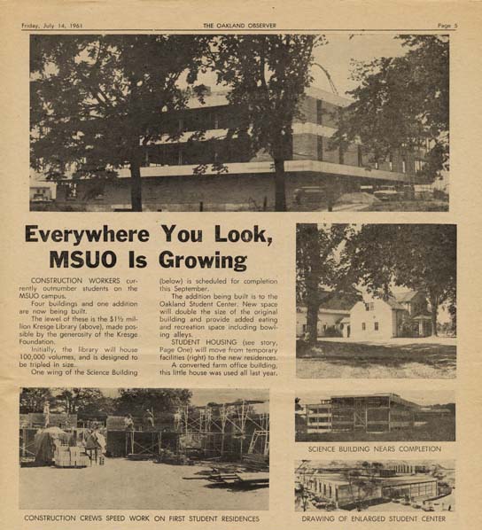 In 1964, MSU-O celebrated the graduation of its second class. The university was growing rapidly. Total enrollment in 1963-1964 reached 1688 and there were 89 faculty members, working and living on the new campus and its 10 buildings. The fourth dormitory, Hill House, was completed as well as the Kettering Magnetics Laboratory. In Summer, the first Meadow Brook Music Festival was held.