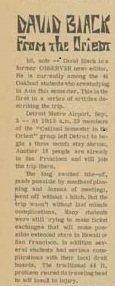 Through the Fall of 1967 OU student David Black wrote a column "From the Orient" in the Oakland Observer, reporting on his experience during the trip.
