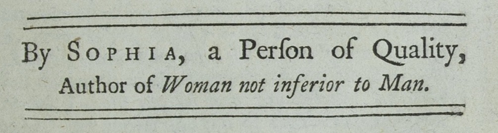 Sophia is the pseudonym of an 18th-century British woman who wrote a series of pamphlets affirming women's equality with men.