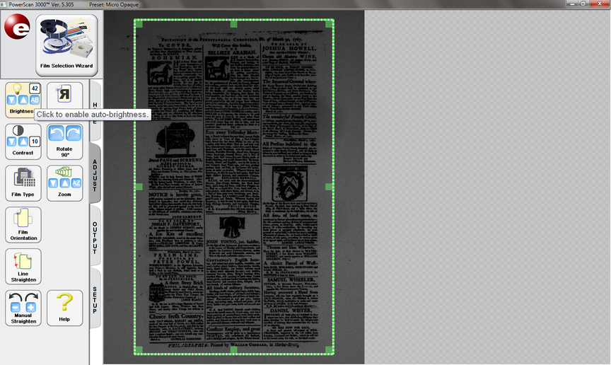 Once you have found the page you want, you may need to adjust the image to be visably clearer. If so, continue to the 'Adjusting the Image' Section