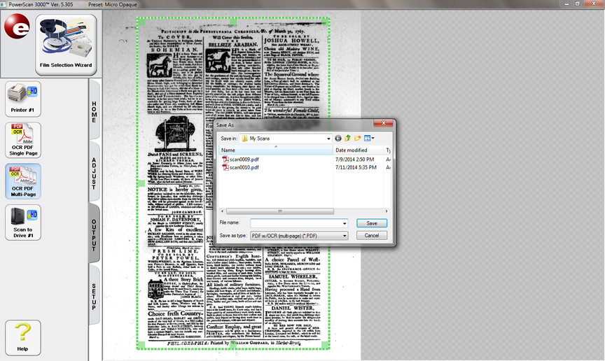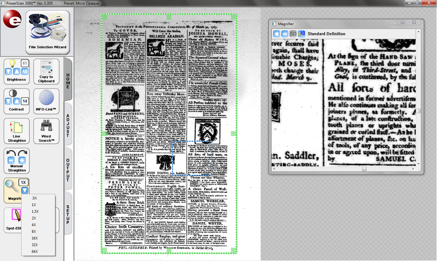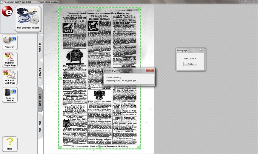 Each of the different types of film can be viewed and scanned with the ScanPro 3000. Click on one of the above formats for information about scanning that type of microform.