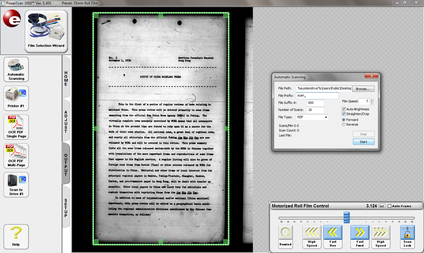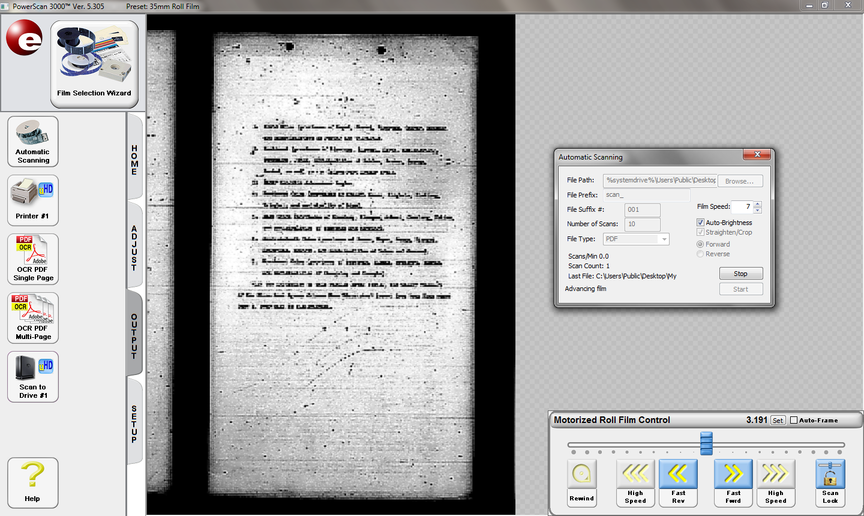 The Automatic Scanning feature is a very helpful tool to use when you are scanning multiple pages from a 35mm Roll Film.